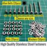 High quality, Stainless Steel Metric M3 Allen Bolts (20) + Washers (50) + Nuts (20).